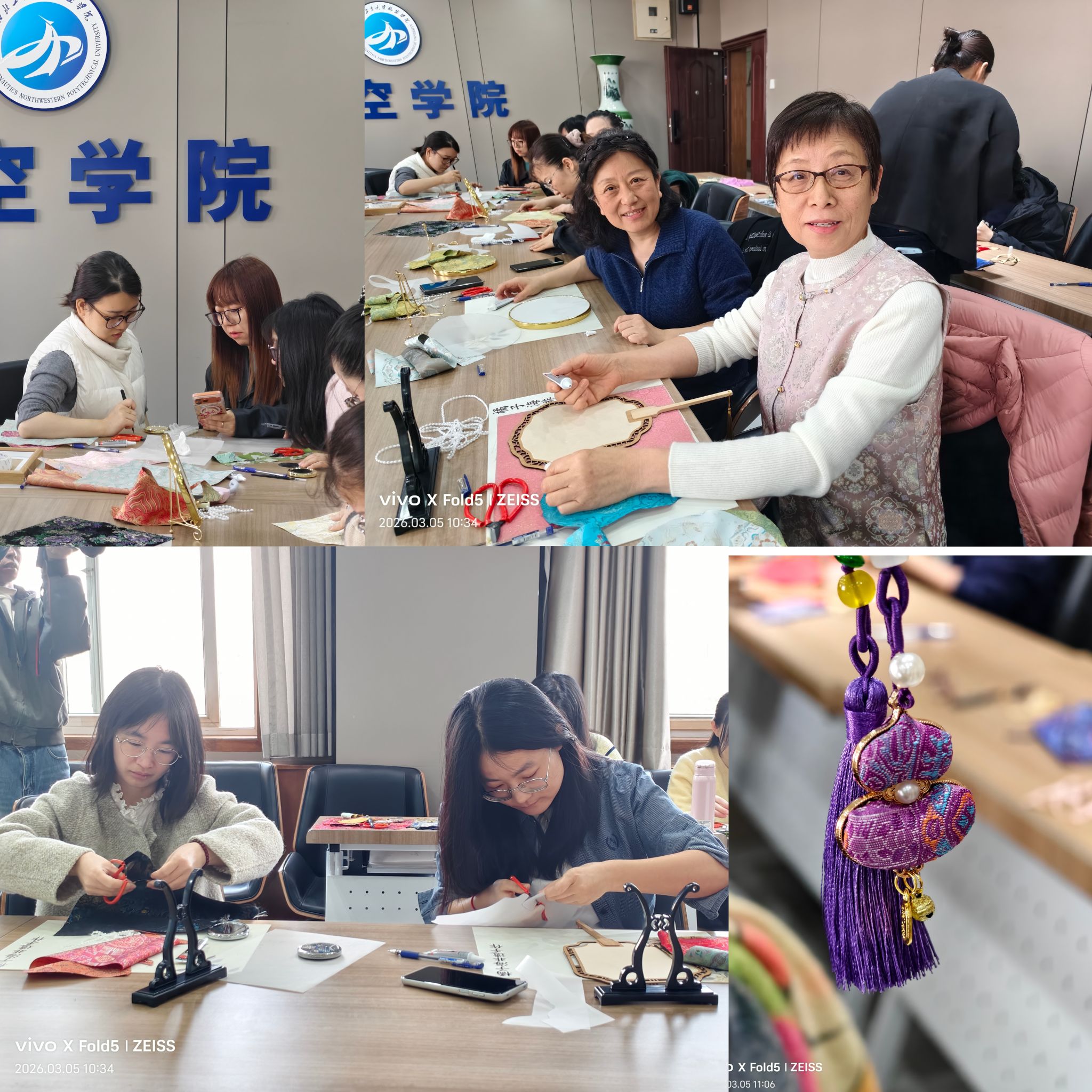 为庆祝 “三八” 国际妇女节,丰富学院女教职工的精神文化生活,感受中华优秀传统文化的独特魅力,3 月 5 日,航空学院工会精心策划组织宋锦珍珠扇非遗体验活动,活动由学院工会主席朱兵主持,学院女教职工们欢聚一堂,在指尖生花中邂逅非遗之美,共度温馨美好的节日时光。