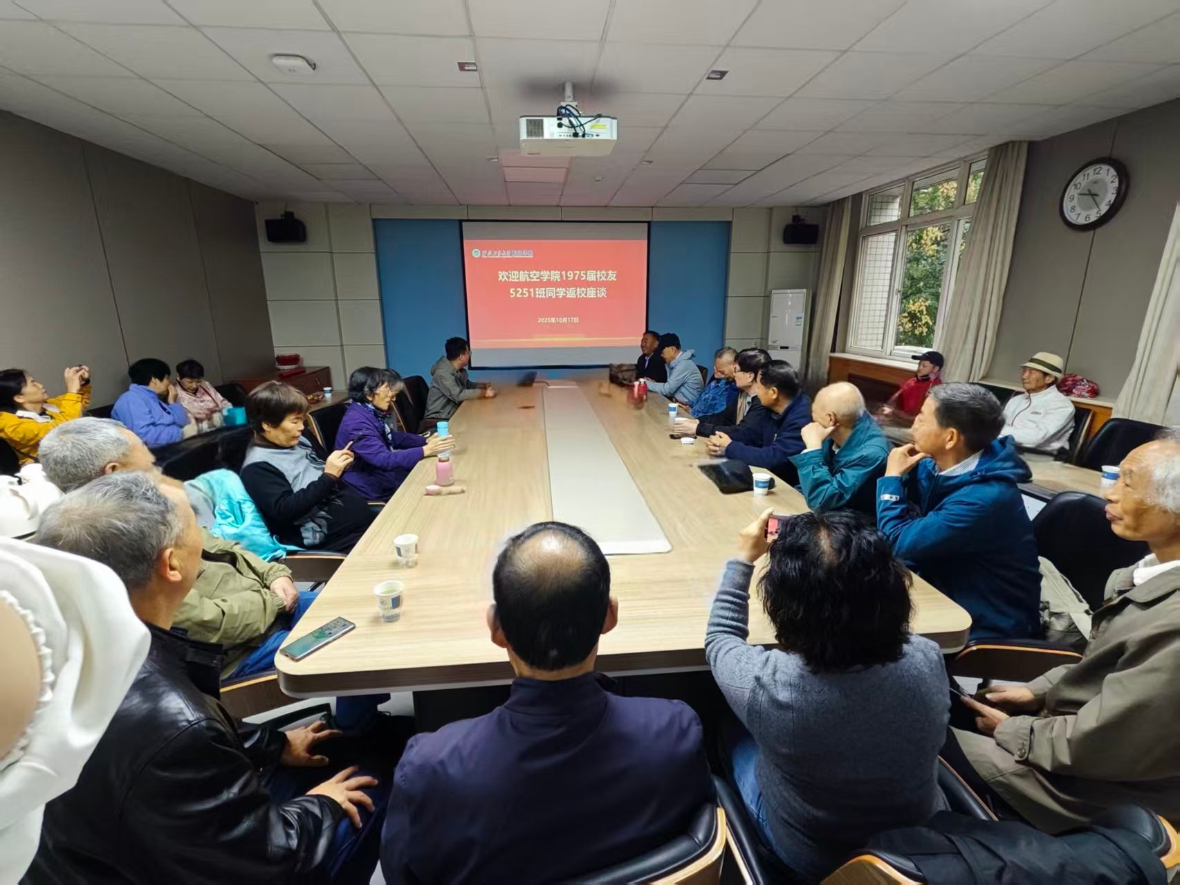 上午,校友们来到航空学院进行座谈,学院校友工作负责人向在座的各位校友,汇报了学院近年来在师资队伍、人才培养、科学研究等方面所取得的成就。校友们对学院的发展,倍感振奋。校友们从校园趣事谈聊到如今的生活近况,时光仿佛倒流回五十年前的课堂与宿舍。