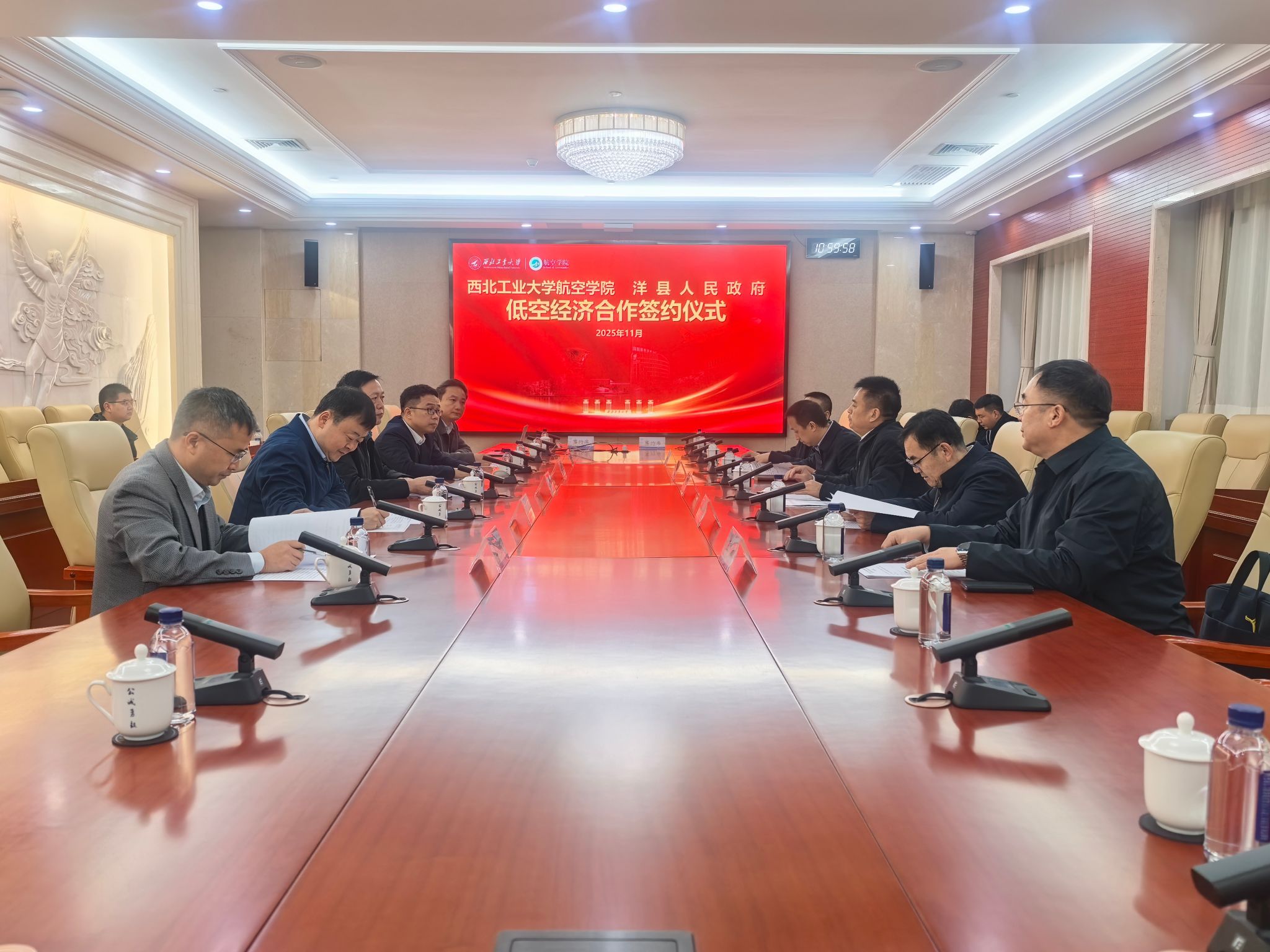 2025年11月10日,西北工业大学航空学院与洋县人民政府低空经济合作协议签约仪式在友谊校区国际会议中心第二会议室隆重举行。校党委常委、副校长张开富,洋县县委书记赵斌、县长张军等双方领导及代表出席仪式,仪式由航空学院党委书记于辉主持。