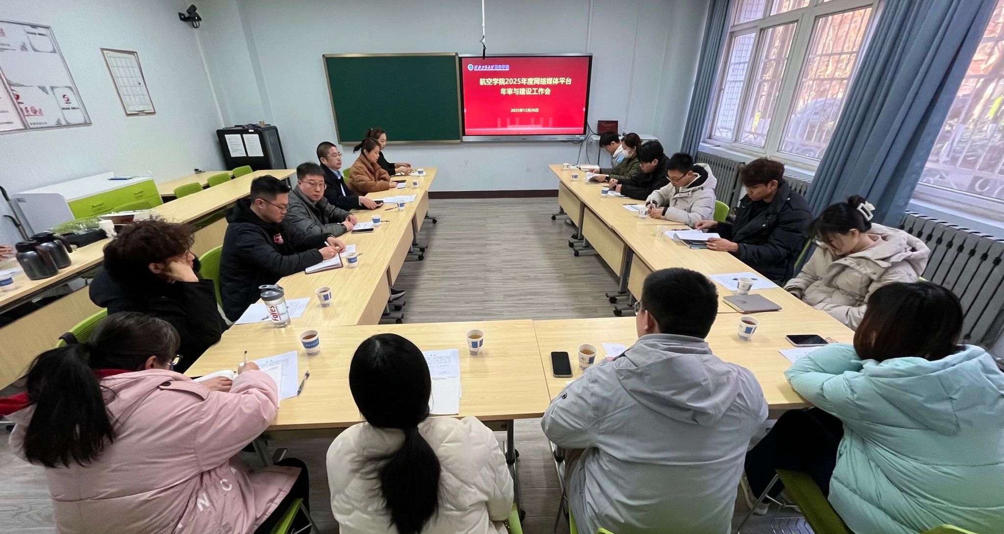 为进一步加强宣传思想文化工作,规范学院网络媒体建设与管理,充分发挥媒体平台弘扬主旋律、传播正能量、服务师生的积极作用,12月26日下午,航空学院召开2025年度网络媒体平台年审与建设工作会。学院党委书记张盛兵、副书记赵超,以及学院各网络媒体平台相关负责人、运营人员参会。