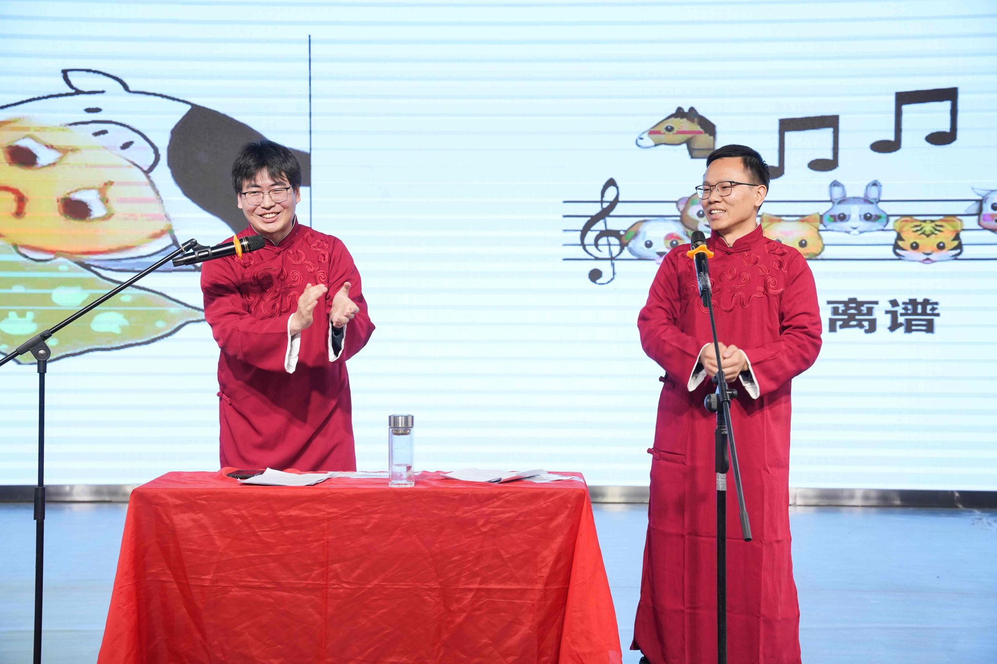 院办全体人员带来歌舞表演《翼起向前,万事顺意》,活泼的舞步与改编的歌词,彰显了他们服务师生、支撑学院“驭风而上”的坚定决心与团结氛围。