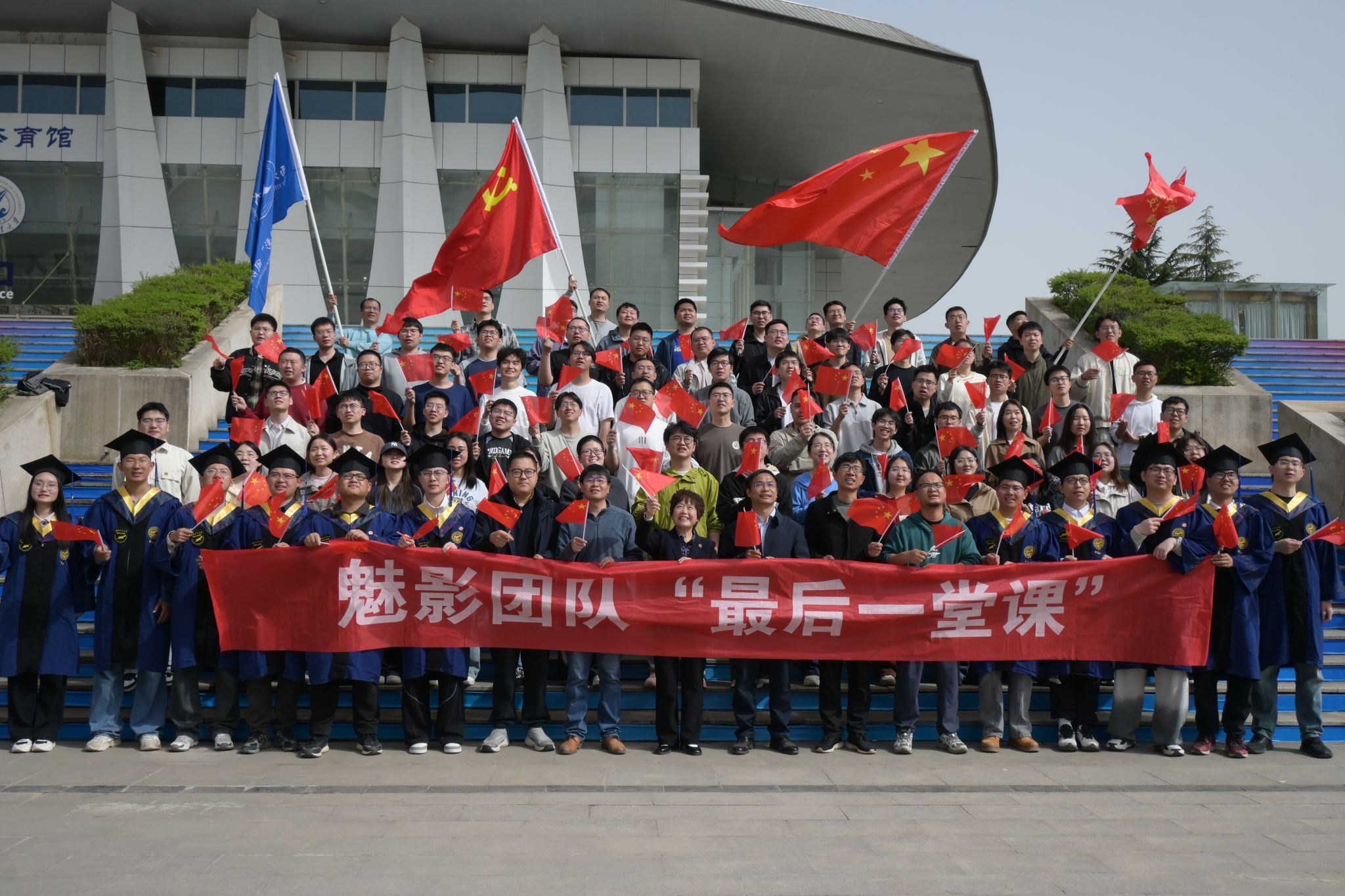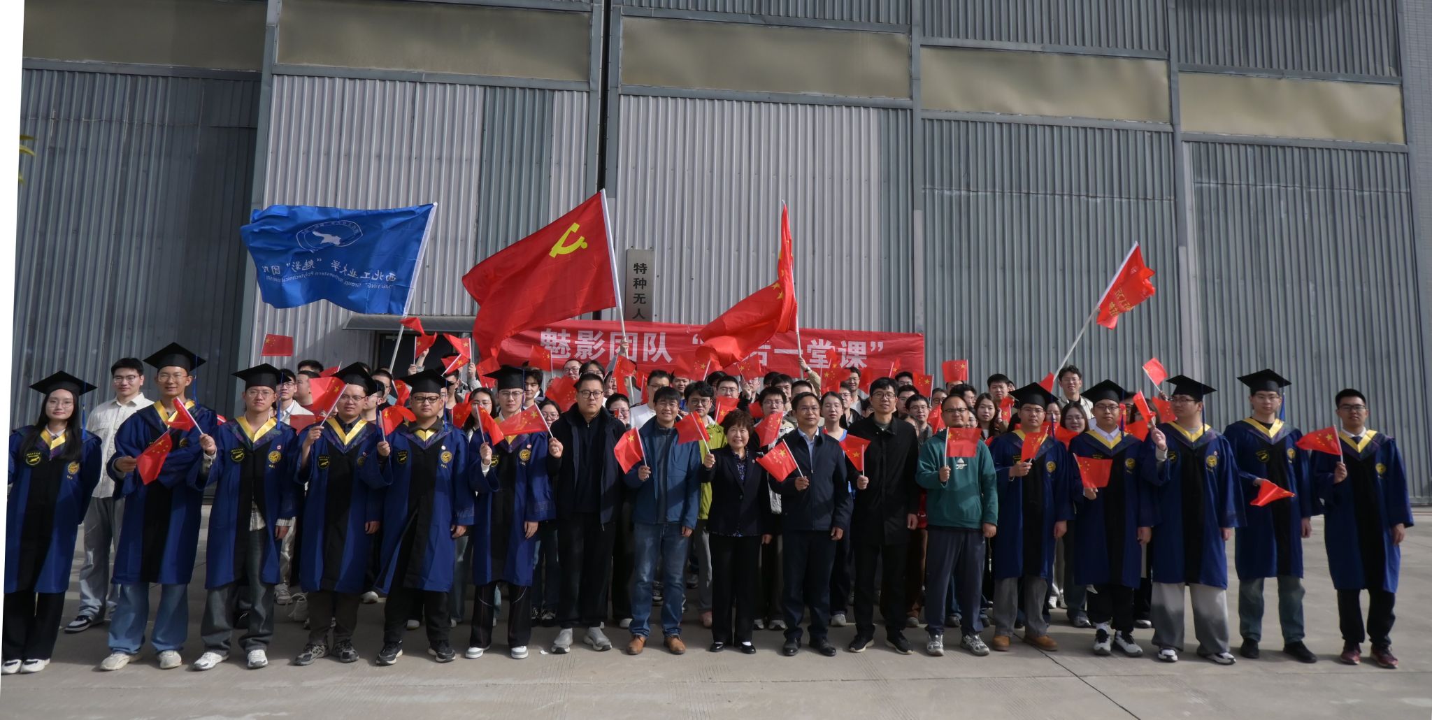 师生返回校园,来到实验室门前、翱翔体育馆广场集体唱响《我和我的祖国》。“我歌唱每一座高山,我歌唱每一条河……”,熟悉的旋律一次次响起,激荡着每一位魅影学子的赤子之心。导师们借歌声寄语毕业生:“愿你们如长航时无人机般坚韧持久,在祖国最需要的空域画出最靓丽的航迹;愿你们始终心怀‘为国铸剑’的使命,让青春在航空强国的征程中闪耀光芒!”