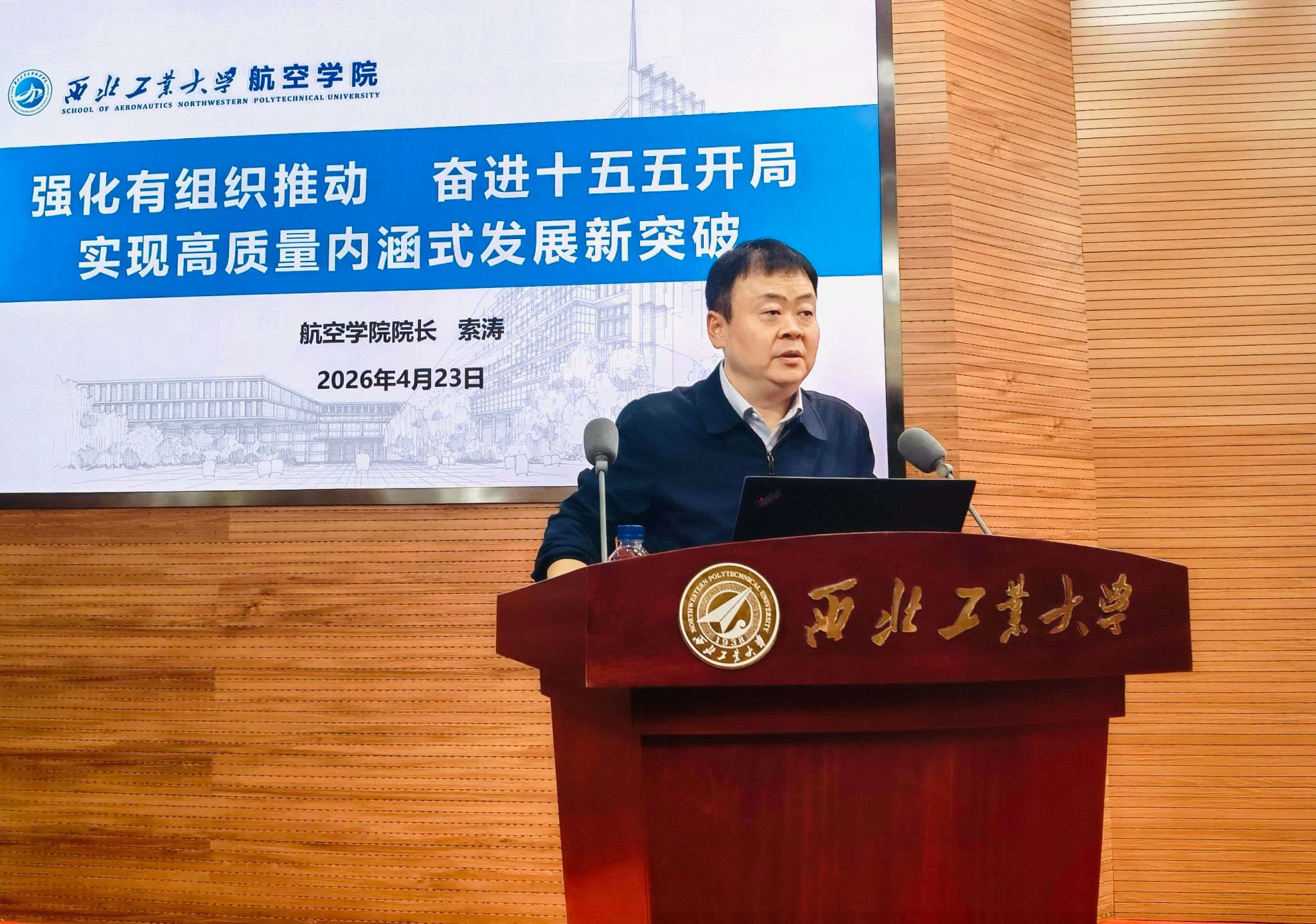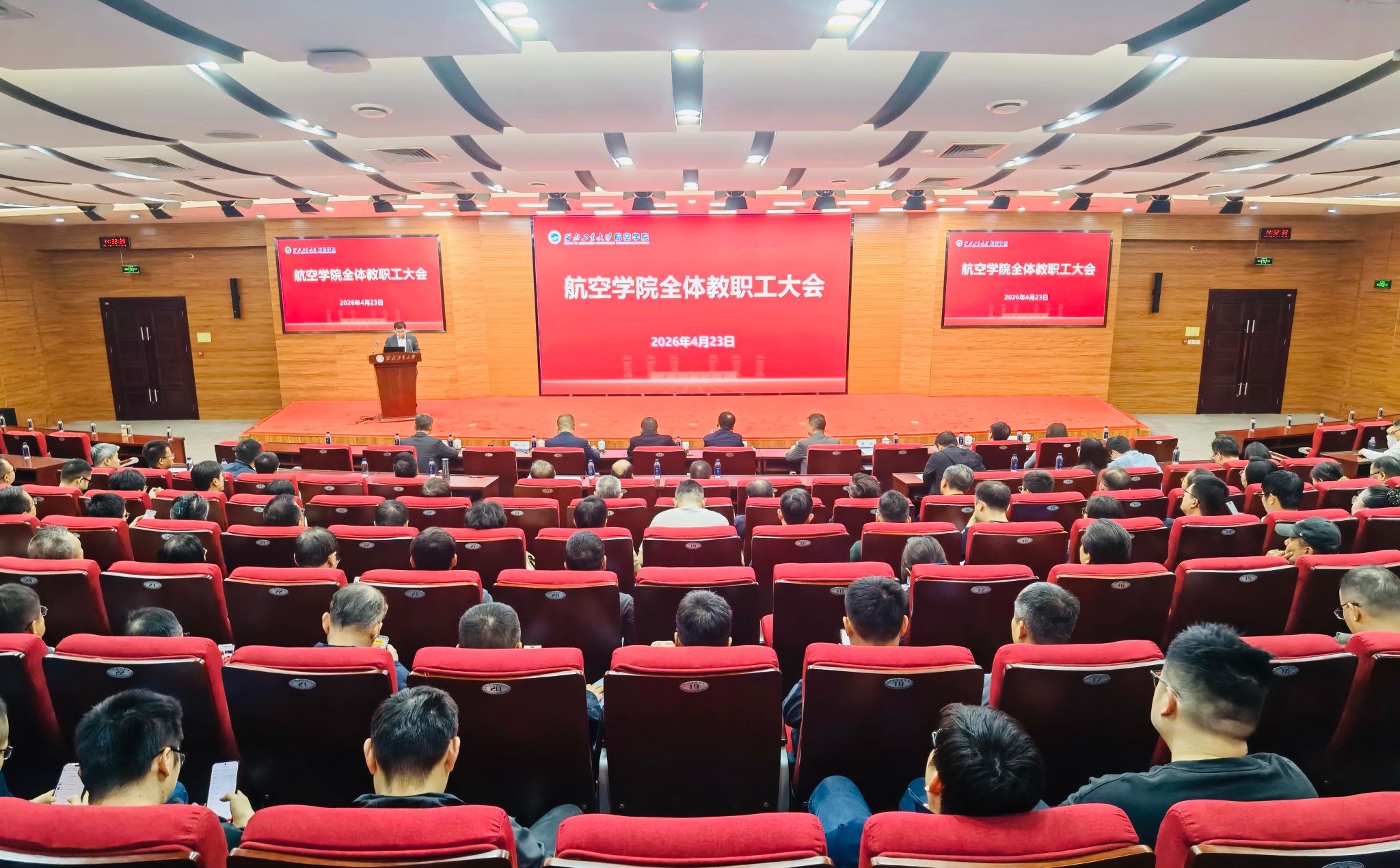 为深入贯彻学校发展部署,统一思想、凝聚共识,全面部署学院 “十五五” 开局各项工作,4 月 23 日下午,航空学院在友谊校区国际会议中心召开全体教职工大会。会议紧扣“强化有组织推动、奋进十五五开局,实现高质量内涵式发展新突破”主题,擘画学院发展新蓝图。会议由航空学院李斌副院长主持。