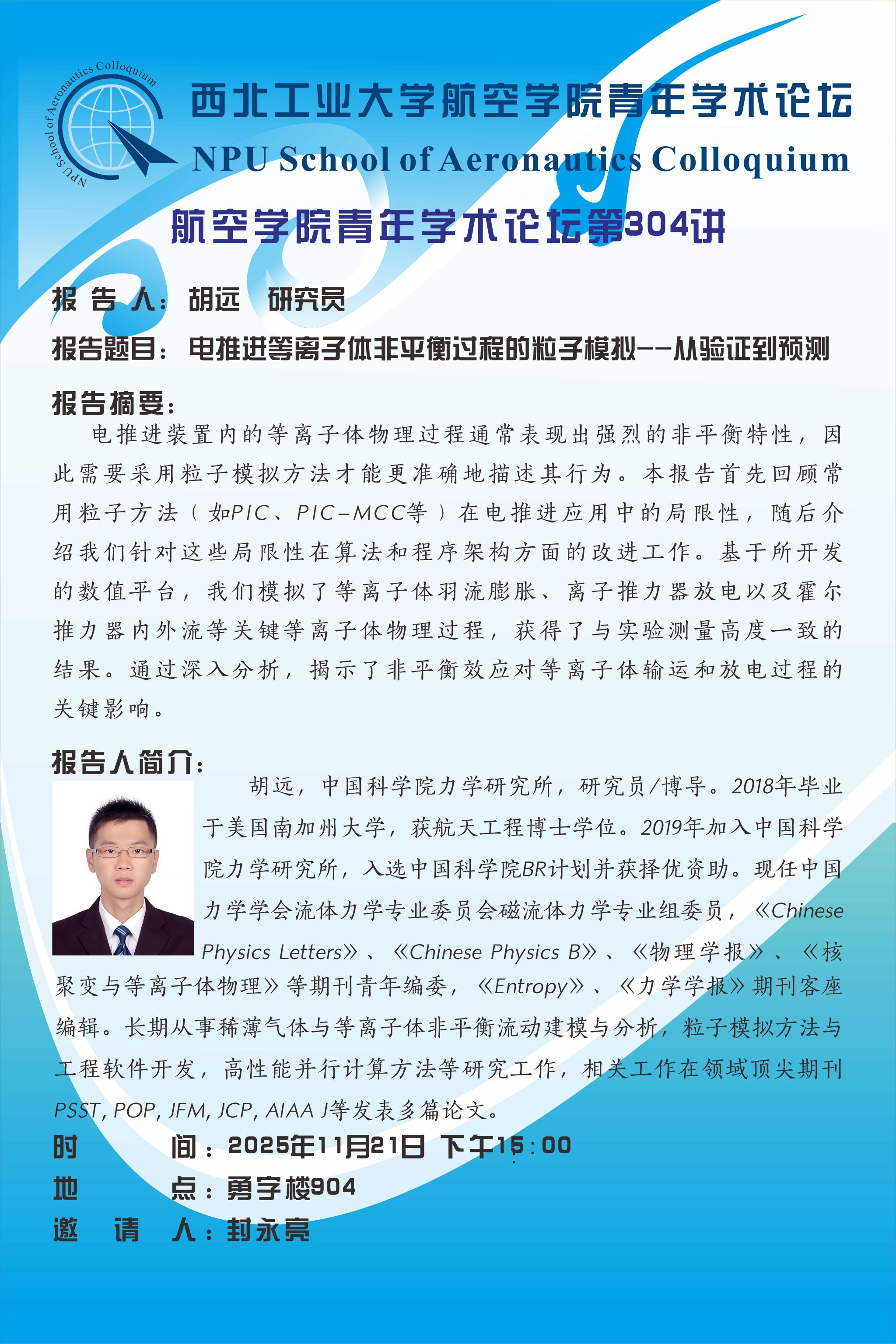 上一篇: 航空学院青年学术论坛第305讲-索思 下一篇: 航空学院青年学术论坛第303讲-刘政 教授