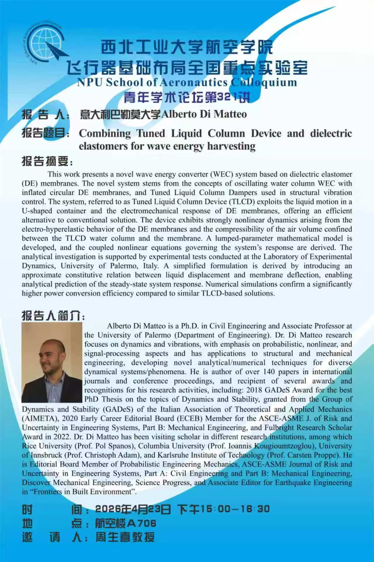 上一篇:航空学院青年学术论坛第325讲--艾俊强 研究员 下一篇:航空学院青年学术论坛第319、320讲--波兰卢布林工业大学 Grzegorz Litak教授