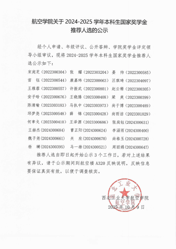 下一篇:航空学院关于2024-2025学年研究生国家奖学金推荐人选的公示