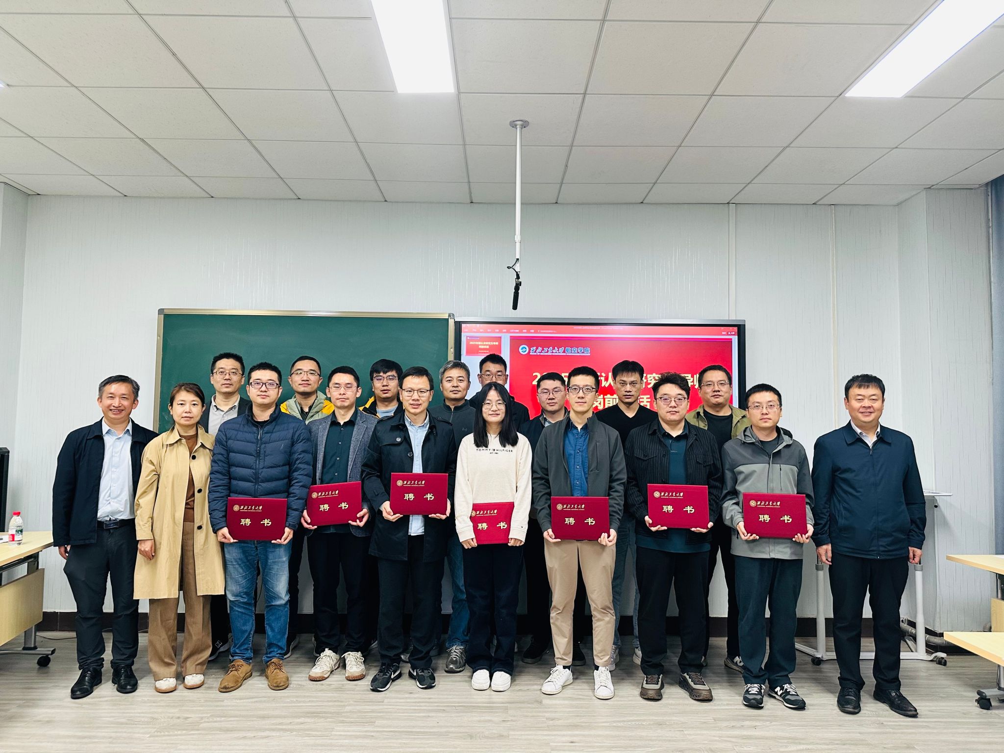 谈话结束后,索涛和新认定研究生导师签订导师岗位责任书,向所有新认定导师颁发聘书并合影留念。