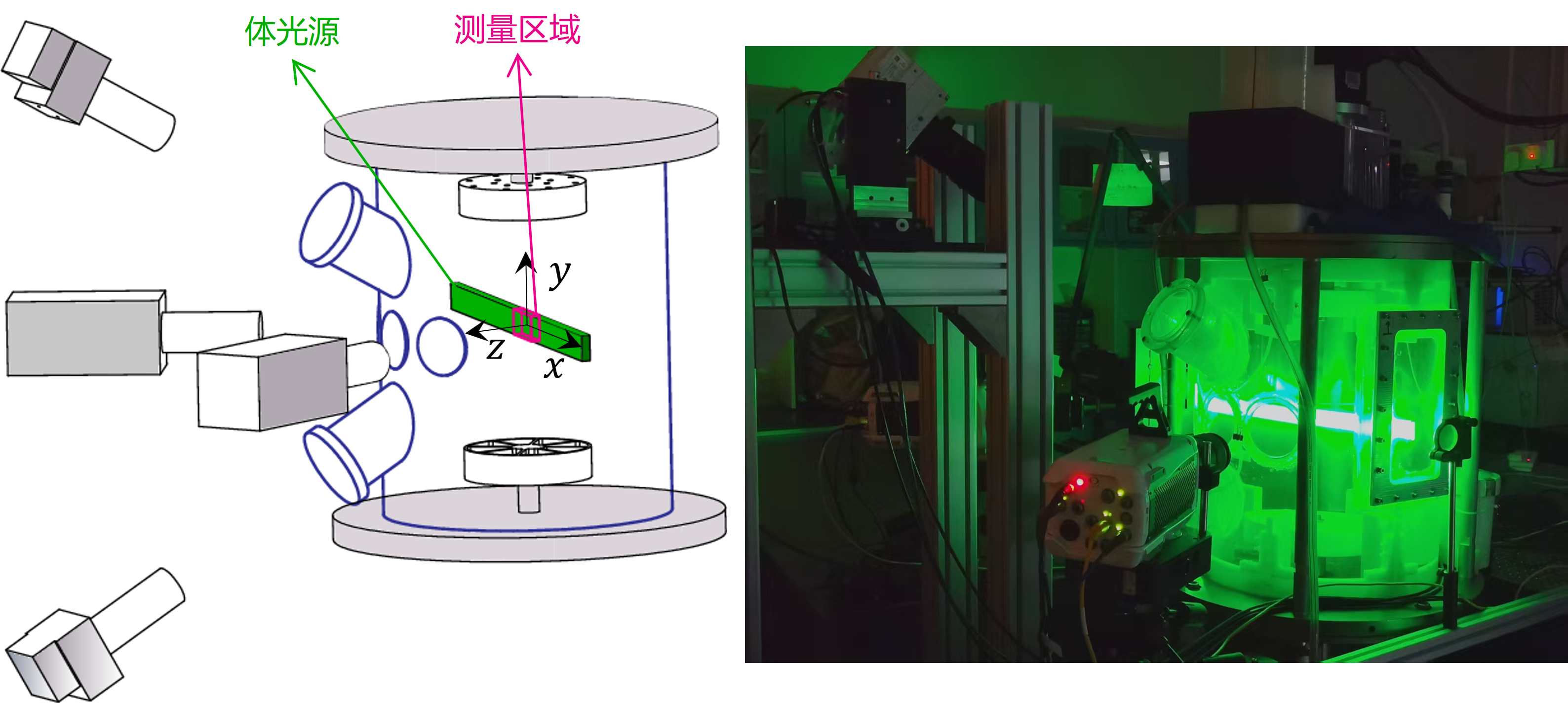 图1:自行设计搭建的实验装置和高分辨率三维速度测量平台